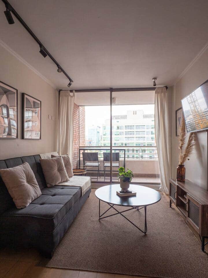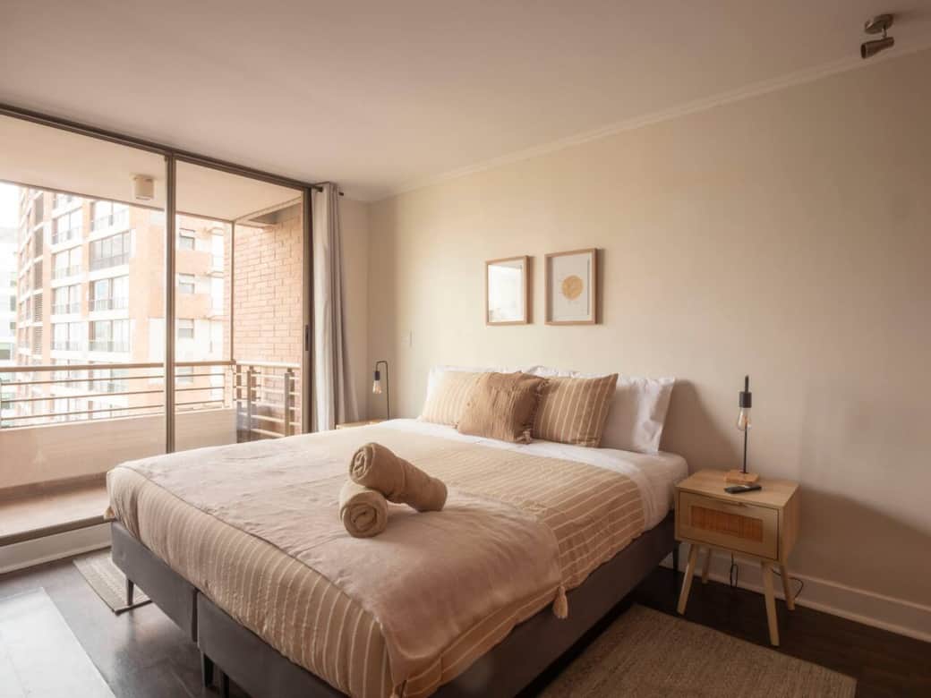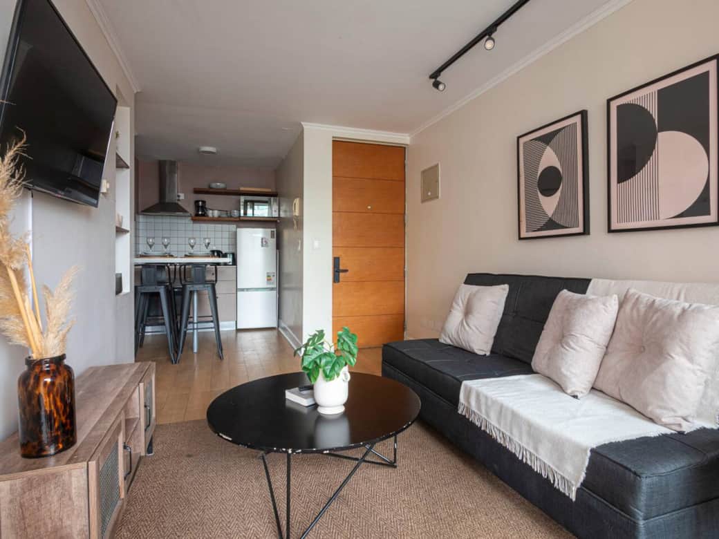 Moderno departamento remodelado a pasos del Metro Escuela Militar. Ideal para familias o viajeros de negocios. Cuenta con cama king nueva, cama nido, WiFi de alta velocidad y capacidad para 4 personas. A minutos de restaurantes, servicios y con acceso directo a Costanera Norte y Américo Vespucio. Cómodo, bien equipado y perfectamente ubicado para disfrutar Santiago.